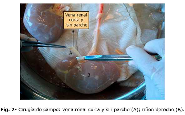 Como se ha planteado, en los casos de riñón para trasplante con una vena renal muy pequeña, la técnica más adecuada es la remodelación de la vena cava para obtener un segmento tubular que prolongue la longitud de la vena renal. En casos de extracciones multiorgánicas, puede ocurrir que la vena cava se haya ido con el injerto hepático, en cuyo caso la solución puede ser elongar la vena renal con una anastomosis término-terminal de un segmento de vena iliaca del propio paciente, la cual brinda una longitud adecuada y se puede recortar al tamaño que se desee según convenga.(7,8,9)